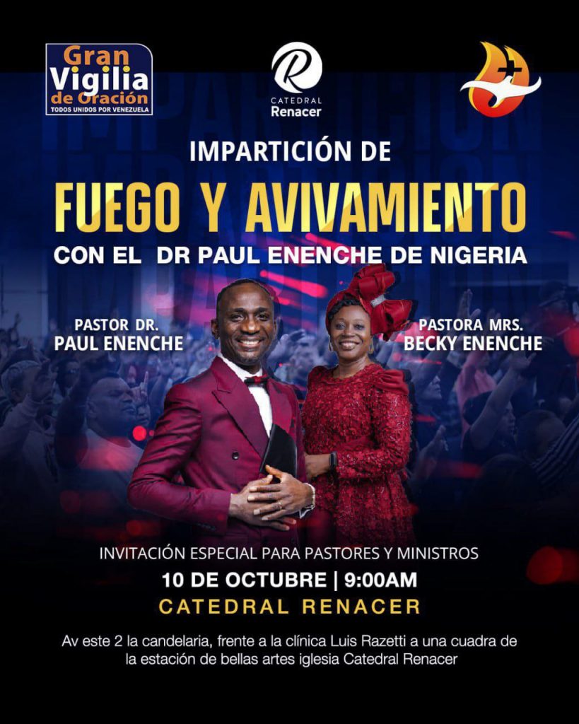 Este 10 de Octubre a las 9:00am, en la Catedral Renacer de Caracas, tendremos una Imparticion de Fuego y Avivamiento con el Dr. Paul Enenche, quien nos visitará desde Nigeria. Caracas, Venezuela.- Desde la Gran Vigilia de Oración, El Movimiento de Unidad Cristiana y la…